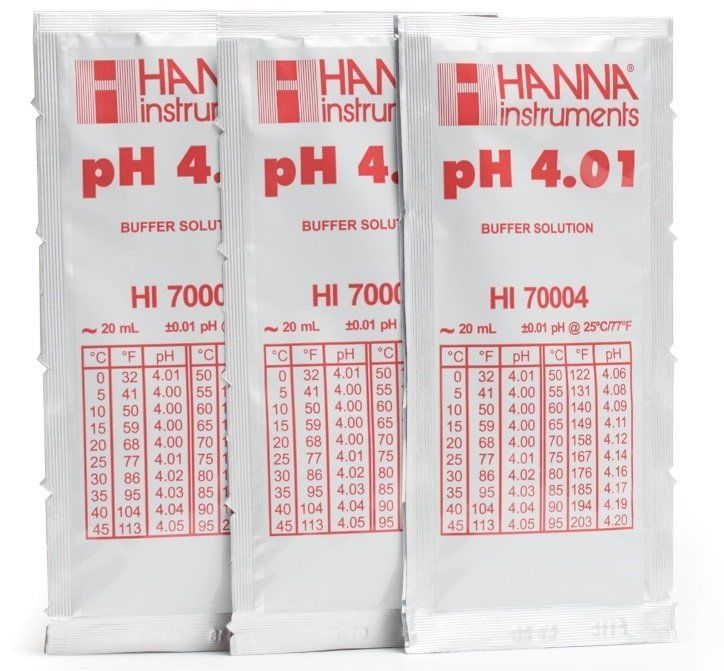 HANNA HI70004P pH 4.01 - 25oC Calibration Buffer Sachets, (25 x 20mL)
