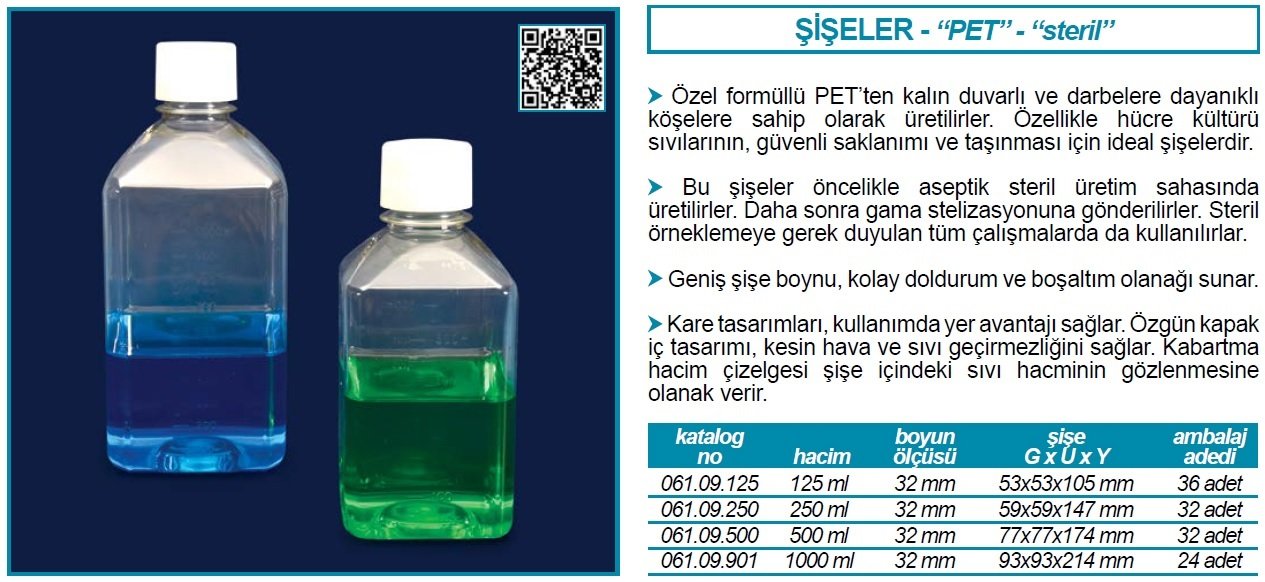 İSOLAB 061.09.250 şişe - PET - steril - 250 ml (45 adet)